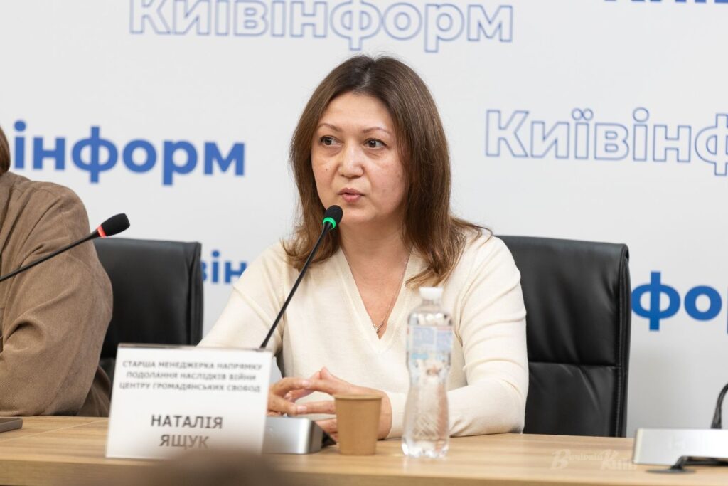 «8 березня ми, жінки, вийдемо всі на Марш жінок. За тих, хто не може сьогодні говорити і перебуває в неволі, як на території Російської Федерації, так і на тимчасово окупованих територіях», — розповіла старша менеджерка напрямку подолання наслідків війни Центру громадянських свобод Наталія Ящук. Вона нагадала, що в російській неволі перебуває 257 жінок. Загроза тортур, утисків і переслідувань чатує на жінок і на окупованих територіях України.